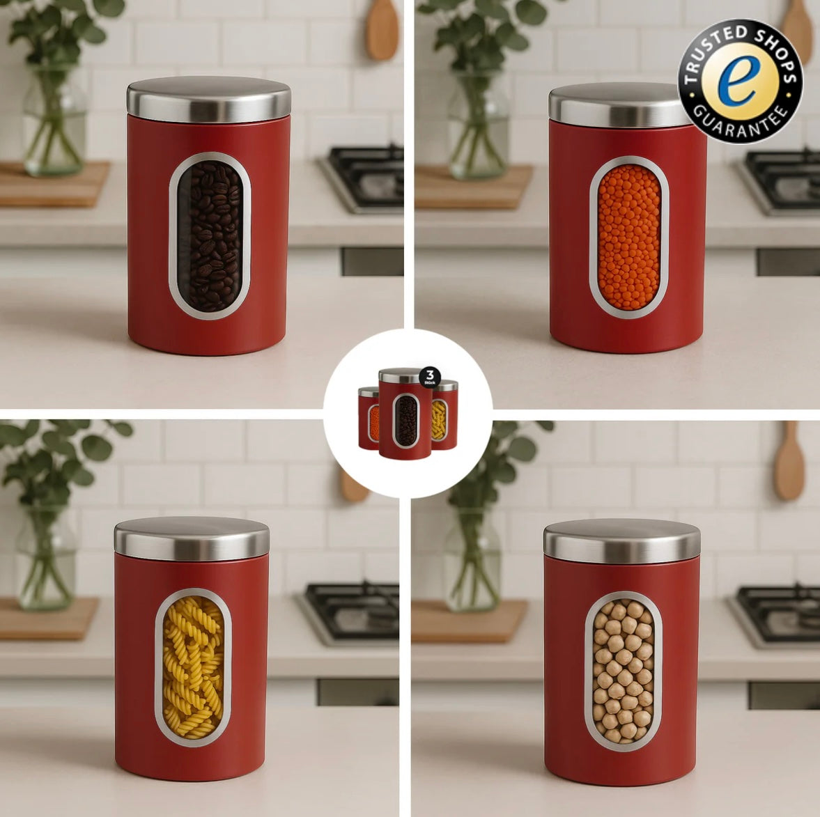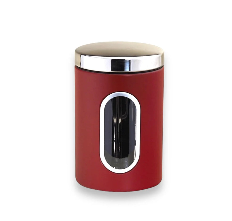 Mittelgroße 2L Aufbewahrungsdose aus Edelstahl mit praktischem Sichtfenster in auffälligem Rot
