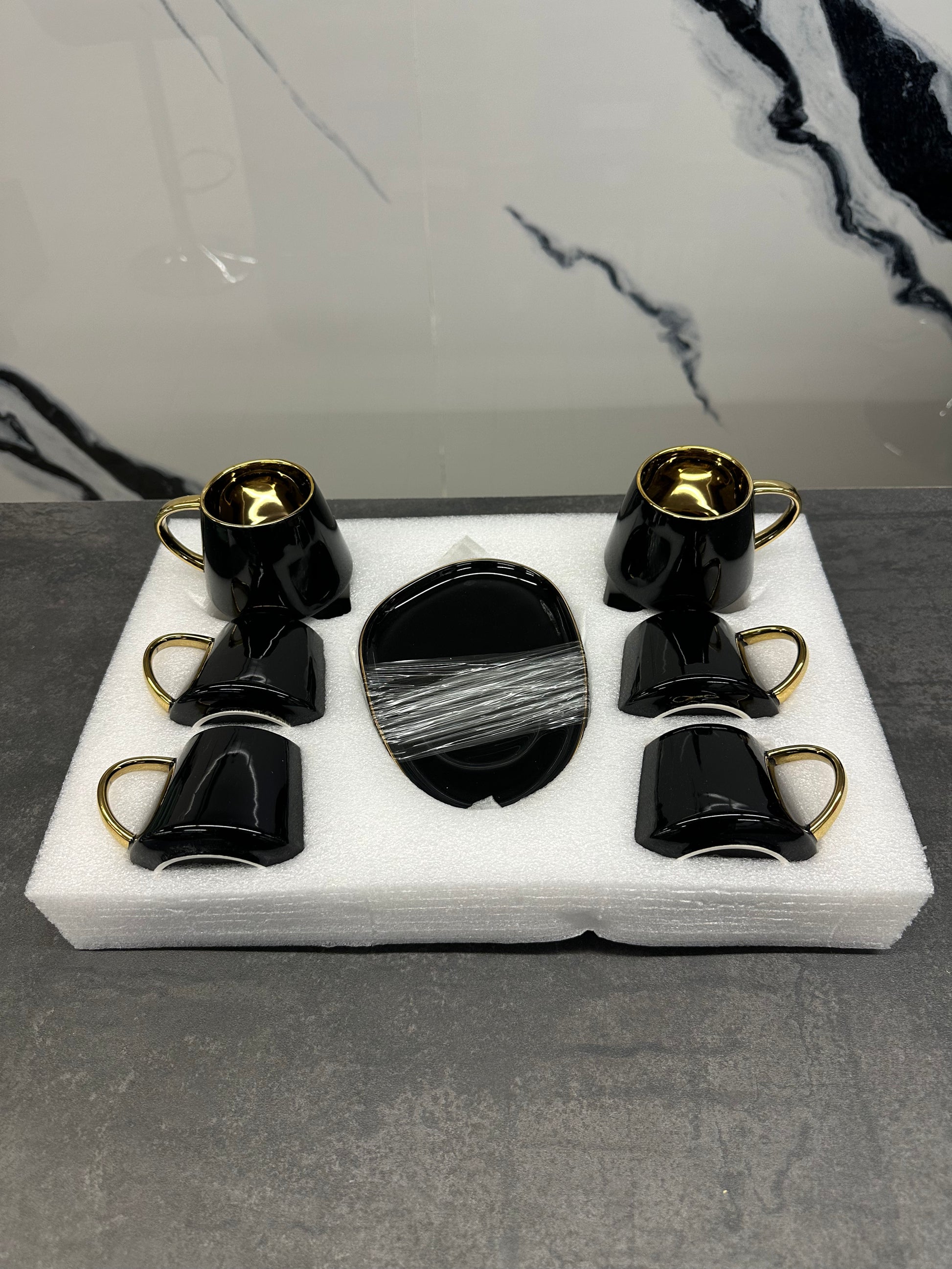 ☕ Mokka Set 12 teilig schwarz/gold - Traditionelles Mokka-Service für 6 Personen