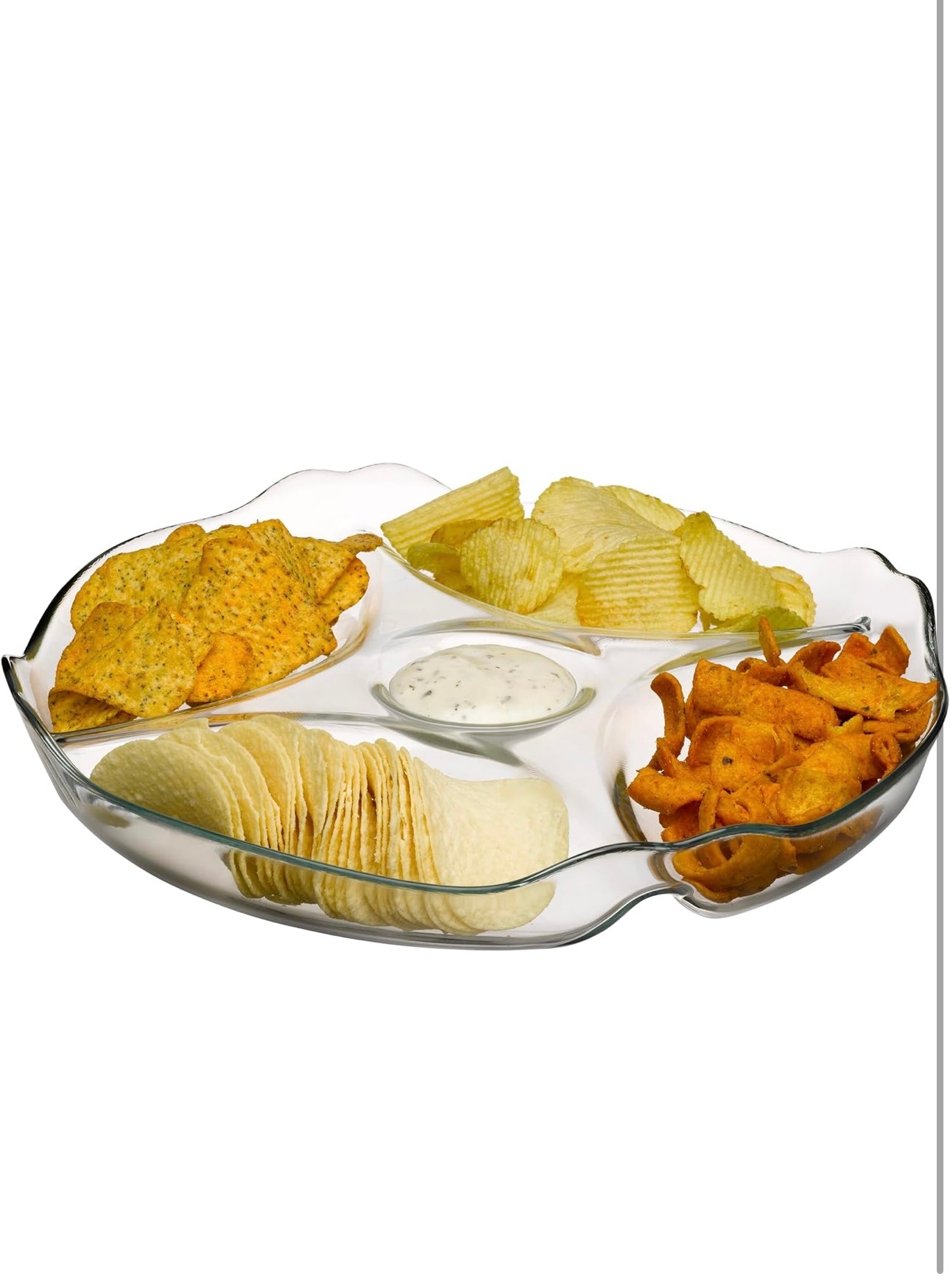 Große Glasschale mit Einteilung, 25,2cm Durchmesser - Perfekt für verschiedene Snacks und Beilagen