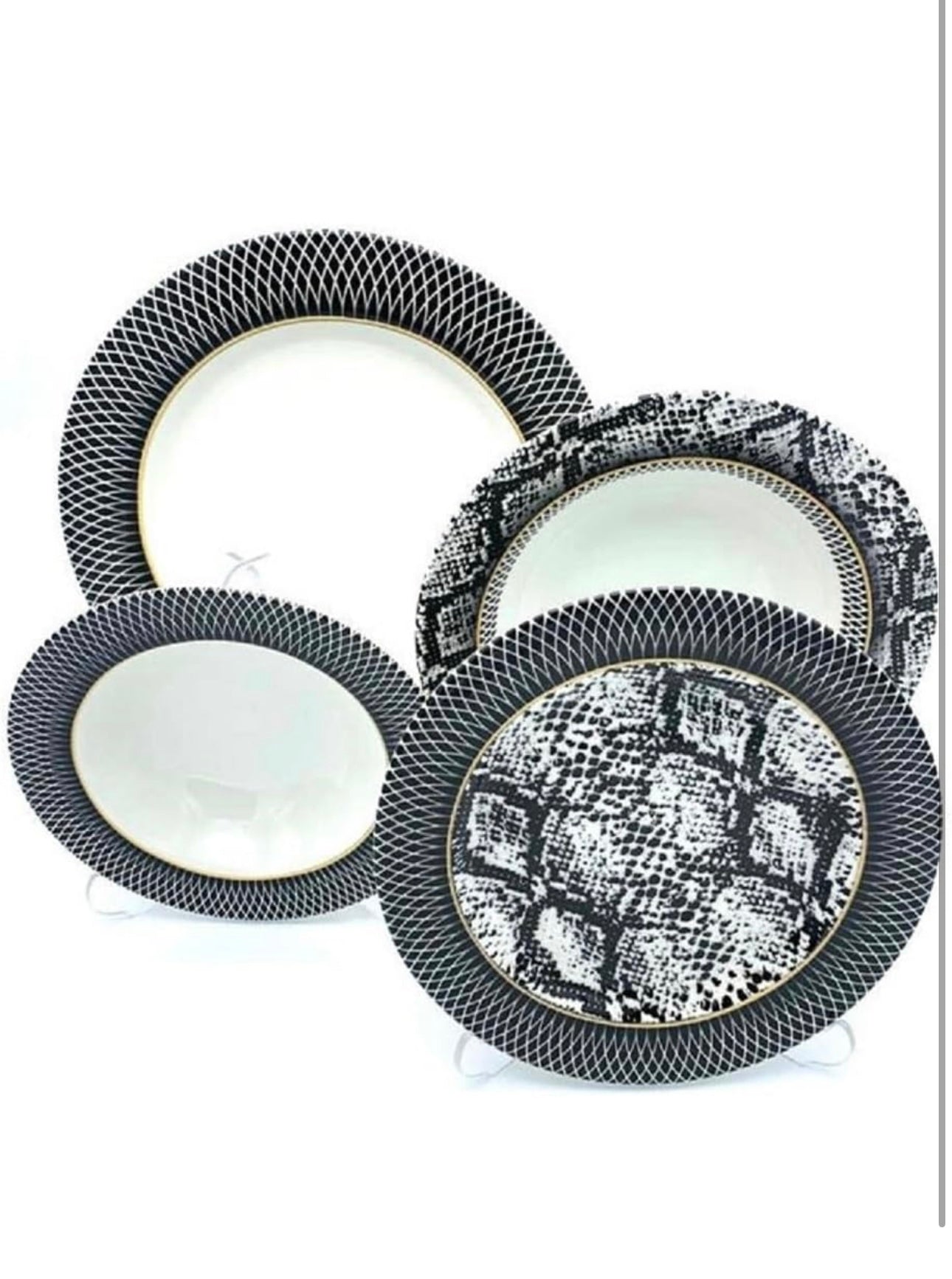 - Komplettes Set: 6x Flache Teller (27cm), 6x Dessert Teller (24cm), 6x Tiefe Teller (21cm), 6x Salat Schälchen (17cm)