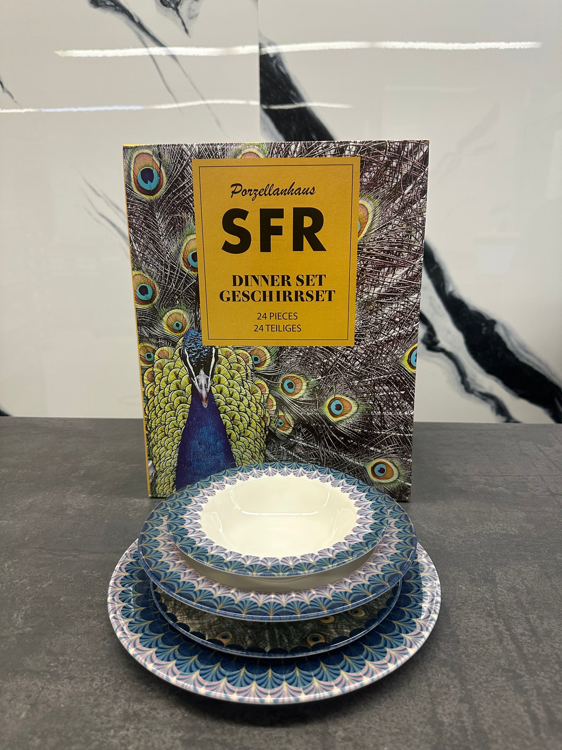 SFR Geschirrset Violetta 24 teilig - Elegantes Porzellan Tafelservice mit violettem Charme