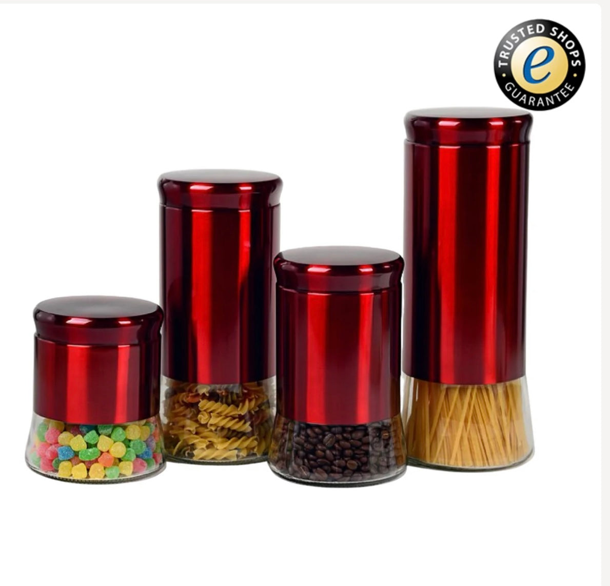 Große 1,8L Vorratsdose aus Edelstahl, Glas und Kunststoff in auffälliger roter Optik