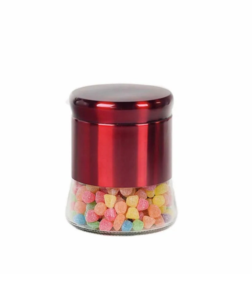Standard 1L Vorratsdose aus Edelstahl, Glas und Kunststoff in auffälliger roter Optik